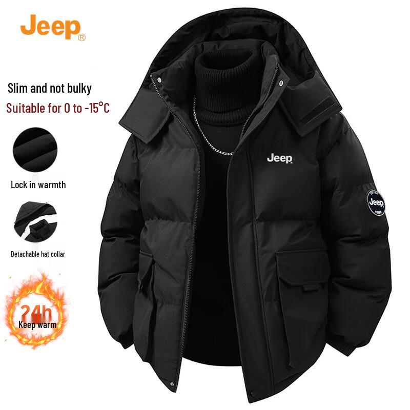 JEEP Men's 2025 Winter Casual Insulated Jacket with Detachable Hood