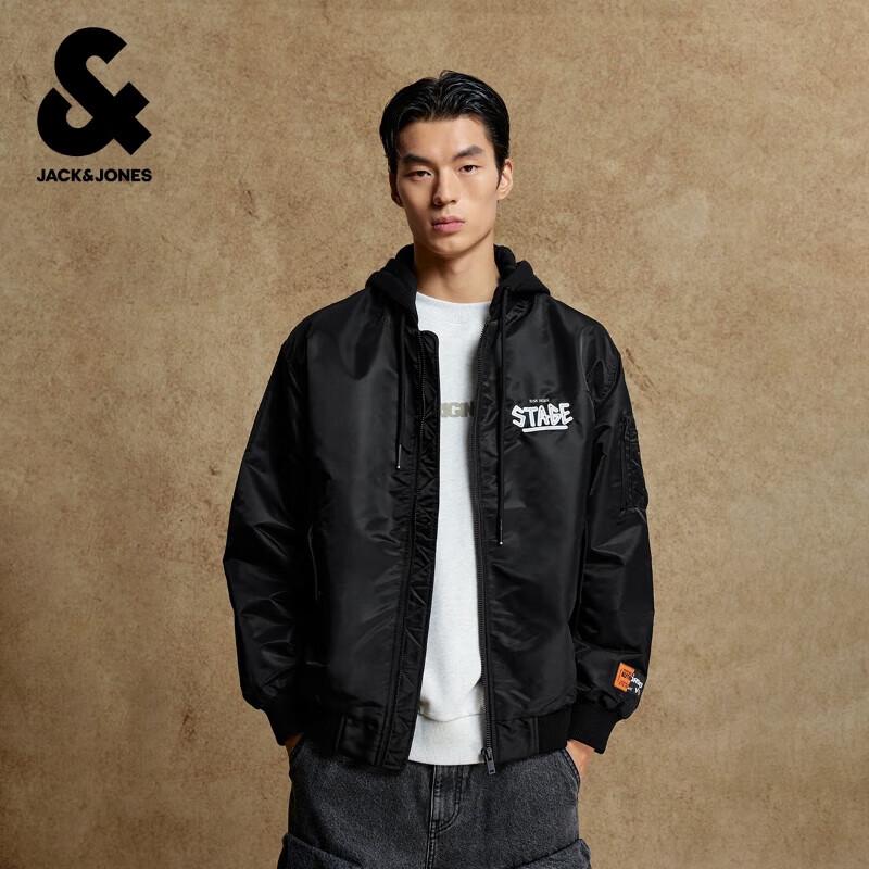 Jack & Jones Herren Kapuzen-Steppmantel mit Buchstabenstickerei