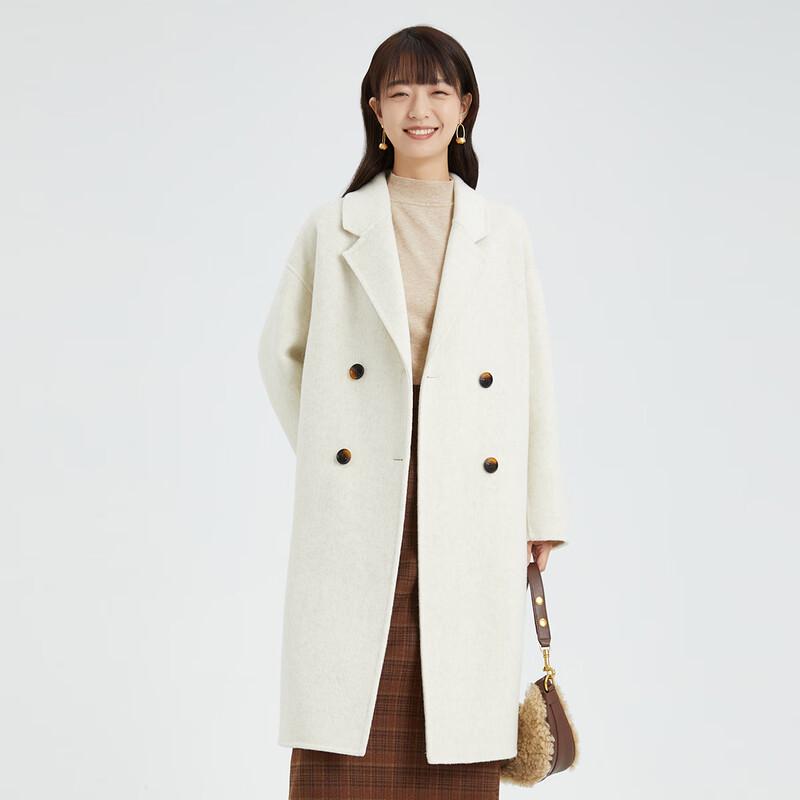Shetu Women's Korean Style Mid-Length Double-Faced Wool Blend Coat