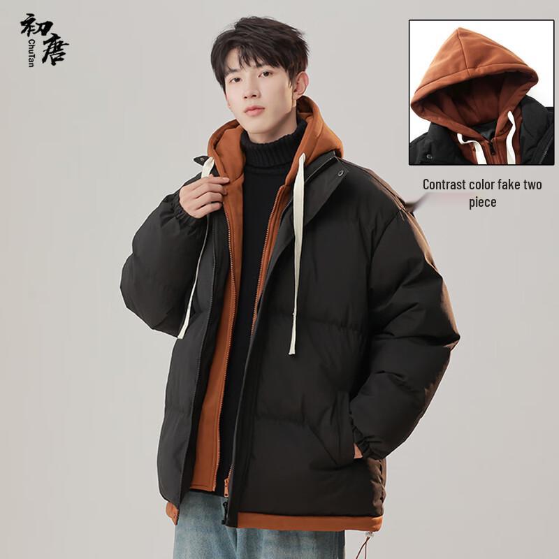 Men's Hooded Faux Two-Piece Padded Jacket