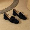 2025 Herbst und Winter neue Retro-Schleife mattes Leder dicker Absatz Einzelne Schuhe Damen Plüsch flauschige Schuhe Slipper zum Hineinschlüpfen
