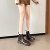 Vintage Rundkopf Grober Absatz Kurze Stiefel Damen Herbst und Winter Braun Britische Smoke Boots Chelsea Boots Schwarz Plateau Martin Stiefel
