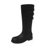 Nischendesign braune Stiefel 2025 neu runde Zehenpartie flache Sohle Stiefel Damen kleiner dicker Absatz hohe Reiterstiefel
