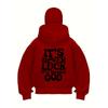 Men's Red Hooded Zipper Jacket "It's Never Luck It's Always God" Printed Jacket with Polyester Ribbed Cuffs and Hemps for Autumn and Winter
