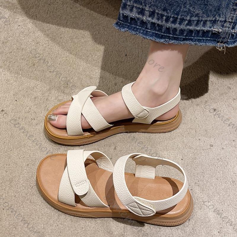 Feiern Sie 2025 Sommer Neue Flache Sandalen für Damen für Draußen Casual Weiche Sohle Schuhe Damen Kreuzband Sandalias Mujer