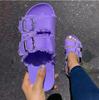 Sommer einzigartig neu lässig Denim einfarbig Canvas Schnalle mit zwei Wörtern mit flachen Pantoffeln P724