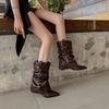 2025 neue Retro spitze Metall Schnalle plissierte kurze Stiefel dicker Absatz Hosenstiefel Damen Stiefel braune weite Stiefel