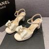 Schleife Dicke Ferse Zehenoffene Sandalen Kleine wasserdichte Platte Mary Jane High Heels Keine müden Füße Strass Fischmaul-Sandalen