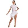Dieses verführerische kurze Kleid ist aus hochwertigem Mesh-Material gefertigt und mit eleganten Perlenquasten verziert, wodurch ein fesselnder Look entsteht, der perfekt für jeden besonderen Anlass ist.. Sein sexy Design bietet eine schmeichelhafte Silhouette, während die aufwendigen Details einen Hauch von Raffinesse und Glamour verleihen.. Ideal für einen Abend oder einen besonderen Anlass, dieses Kleid wird Ihnen ein selbstbewusstes und stilvolles Gefühl geben.