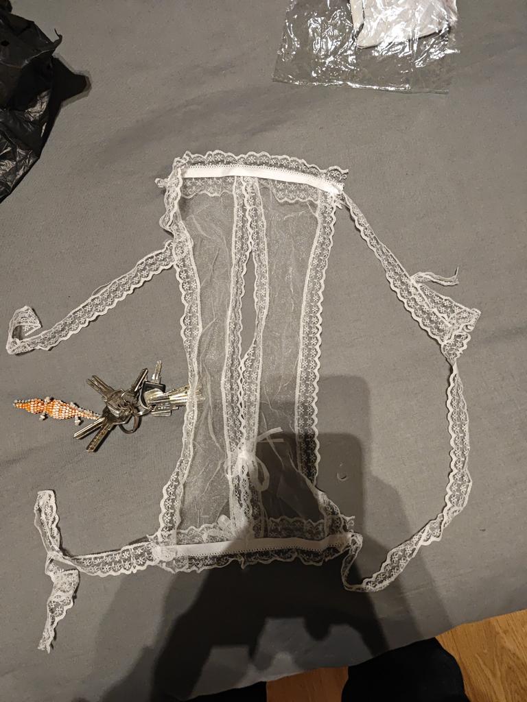 Sexy transparenter Spitzen-String mit offenem Schritt und seitlicher Schleife zum Binden