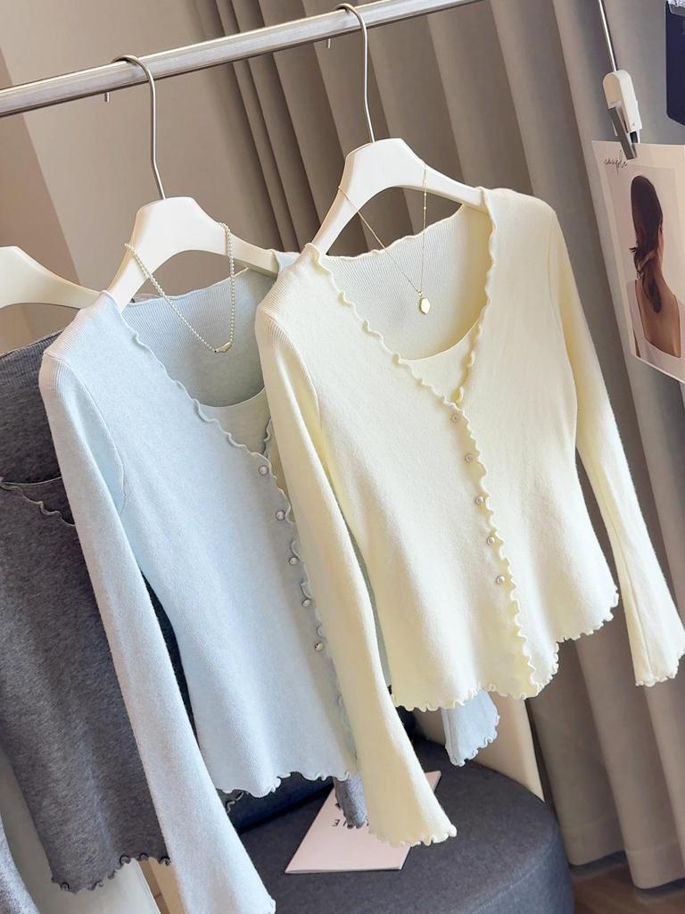 Koreanischer Stil Zweiteiliges Wollstrick-Camisole: Damen Schlankmachendes Langarm-Top für Herbst/Frühling