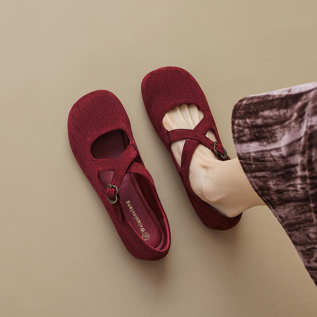 Weiwei girl 2188-11 Mary Jane Schuhe Damen flachsohlige gekreuzte Ballerinas Retro runde Zehenpartie flacher Ausschnitt Einzelne Schuhe Damen