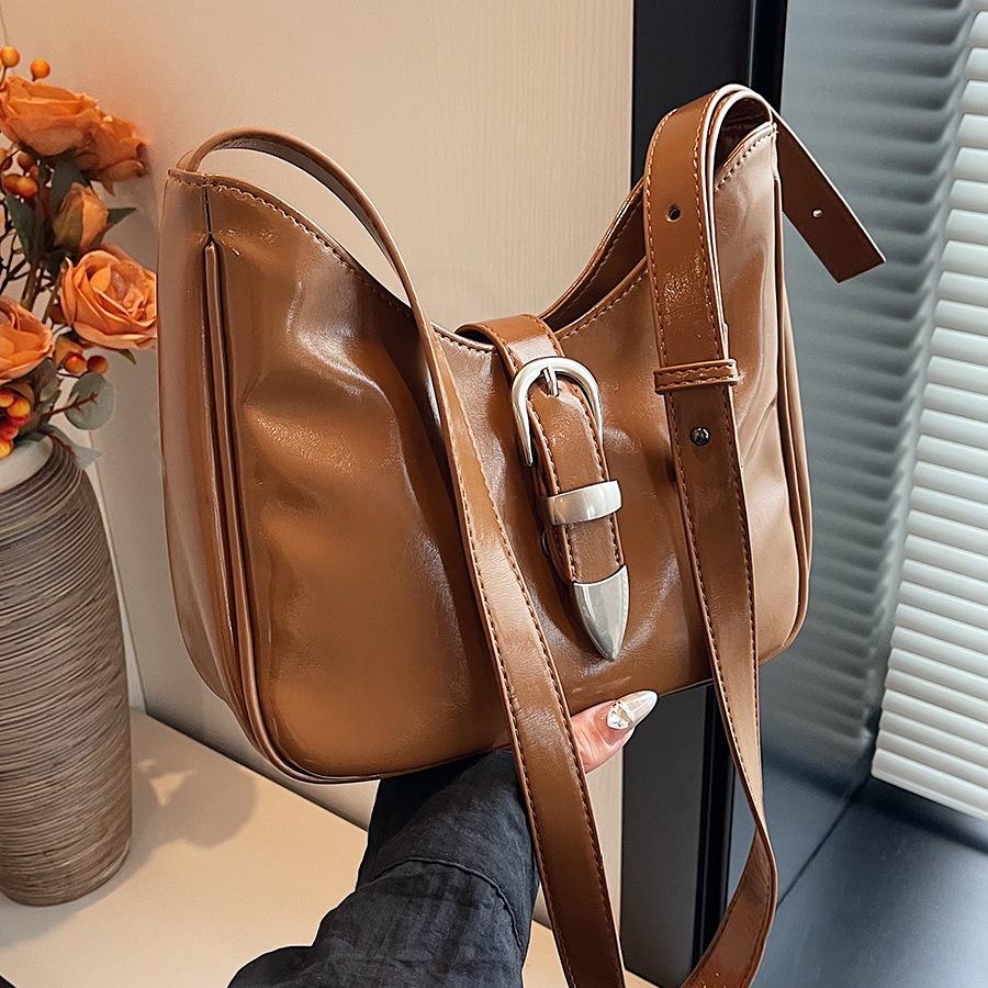- **Details zur Strukturierung**: Verfügt über eine stilvolle Hobo-Taschen-Silhouette mit PU-Material, glänzender Oberfläche und einem markanten metallischen Schnallenakzent. Es unterstützt vielseitige Tragemöglichkeiten (Schulter, Crossbody) mit verstellbarem Riemen. Es versprüht Retro- und eleganten Charme und ist perfekt, um jedem Outfit eine ausdrucksstarke Note zu verleihen.