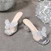 Mode Eilyken Neues Design Schmetterlingsknoten Eckige Zehenpartie Damen Hausschuhe Elegant PVC Transparent Kristall Runde Absätze Bankettschuhe