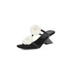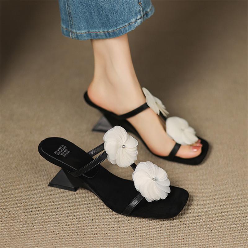 Mode Neue Sommer Hausschuhe Schuhe mit eckiger Spitze für Damen Mode Blume Hohe Absätze Hausschuhe Handgefertigt Klobiger Absatz Gladiatorenschuhe Schwarz