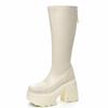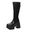 Mode 11CM Mikrofaser Römische Frühling Kniehohe Stiefel Damen High Top Herbst Winter Damen Synthetisches Leder Plateau Keilabsatz Damen Schuhe