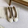 Mode Französische Ballerinas Damen Weich Flach Eckige Zehen Schleife Frühling und Sommer Neu Bohnenschuhe