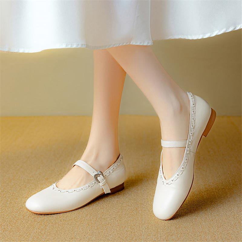 Mode Neue Frühling/Sommer Echtleder Damen Schuhe Schuhe mit runder Spitze für Damen Mode Nieten Mary Jane Schuhe Niedriger Absatz Damen Pumps