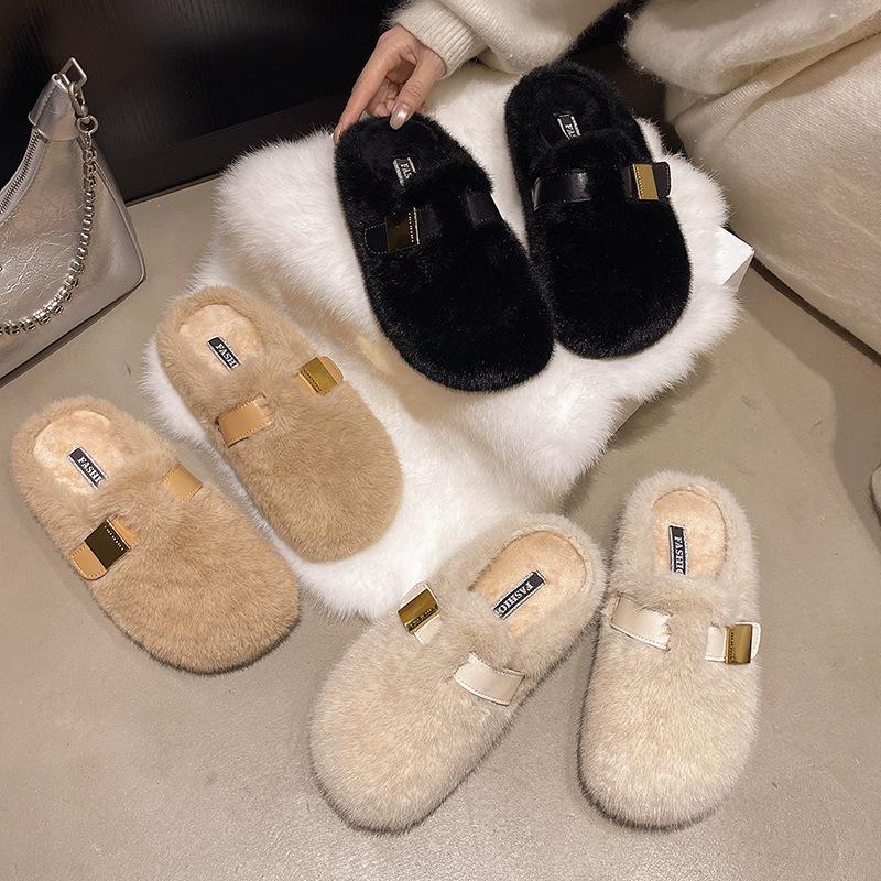 Plüsch Plüschtasche Kopf Halbschuhe Damen Herbst- und Winterbekleidung 2025 neue faule Doudou-Schuhe ohne Absatz Baumwollmopp