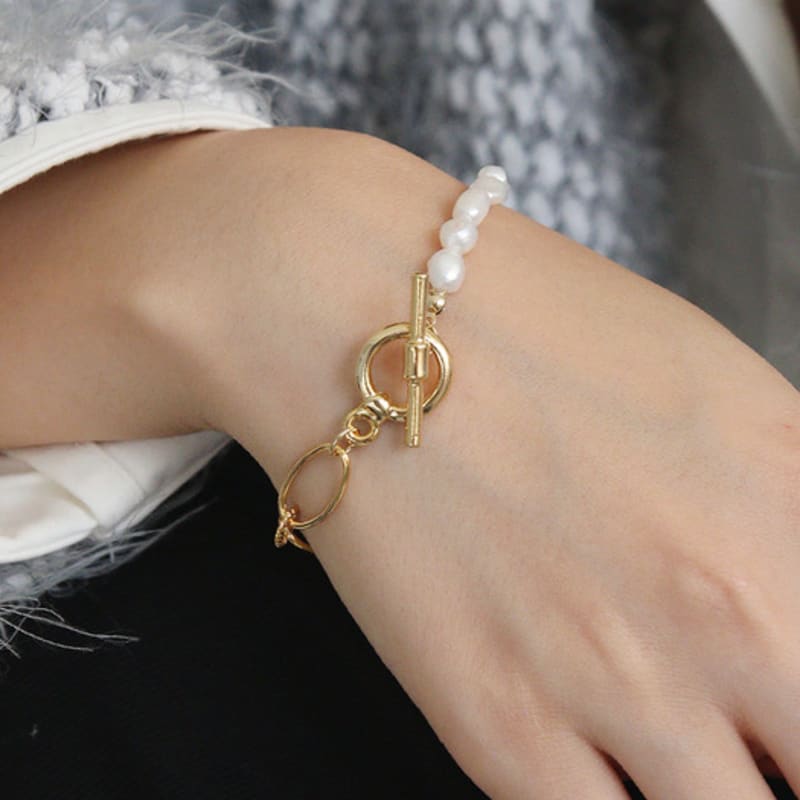 Shertz Knebelverschluss Süßwasserperlen Kettenarmband