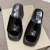 Sandalen mit dicker Sohle für den Sommer 2025 für Damen, neue Muffin-Freizeit-Einwort-Slipper mit quadratischer Spitze, modische Farbabstimmung, coole Slipper für Damen