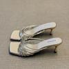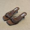 Außen Temperament quadratischer Kopf dünner Riemen dünner Absatz Damen Sommer coole Hausschuhe schöne französische Kreuzung hoher Absatz offene Zehen römische Sandalen