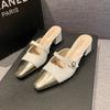 Spitze Zehenpartie Taschenkopf Französische Halbschuhe draußen Damenschuhe Frühling flach lässig Mary Jane Pedale Sandalen Tide