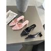 Koreanische Version Satin Ein-Wort Schleife Dicke Ferse Taschenkopf Hausschuhe 2025 Sommer neu hohl halb schleppend Außenbekleidung coole Hausschuhe