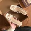 2025 neue Sommer Französische sanfte Schleifensandalen Ein Pedal dicker Absatz eckige Spitze offene Zehen weiß ein Wort Pantoletten Damen