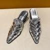 Lackledertasche Kopf dicker Absatz mittlerer Absatz spitz zulaufende Halbschuhe Sommerkleidung High Heels Mules Sandalen Damenschuhe Plateauabsatz