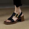 Britischer Retro-Stil Ein-Wort-Sandalen Damen Sommer mittlerer Absatz 2025 neu offen Zehen Schnalle dicker Absatz Römersandalen