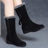 Mode Keil Baumwollstiefel Winter Neu Runde Zehe Wildleder Metallring Seitenreißverschluss Plateau Rutschfest Verschleißfest Hohe Stiefel