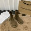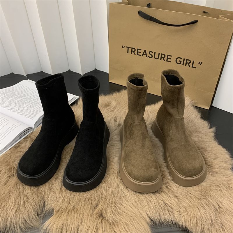 Schwarzfarbene Martin-Stiefel mit dicker Sohle und Nischendesign, Damenschuhe 2025 Herbst und Winter, neue Samt-Elastik-Wildleder-Kurzstiefel