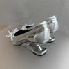 Mode Silber Spitzschuh High Heels 2025 Frühling und Herbst Neuer Stil Elegant Schleife Flacher Ausschnitt Schwebender Einzelner Schuh Kleid