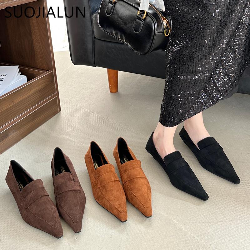 Mode SUOJIALUN 2024 Neue Marke Damen Bootsschuhe Spitze Zehenpartie Slipper Damen Elegant Einzelne Schuhe Quadratischer Niedriger Absatz Kleid Pumps Schuhe