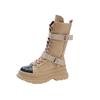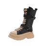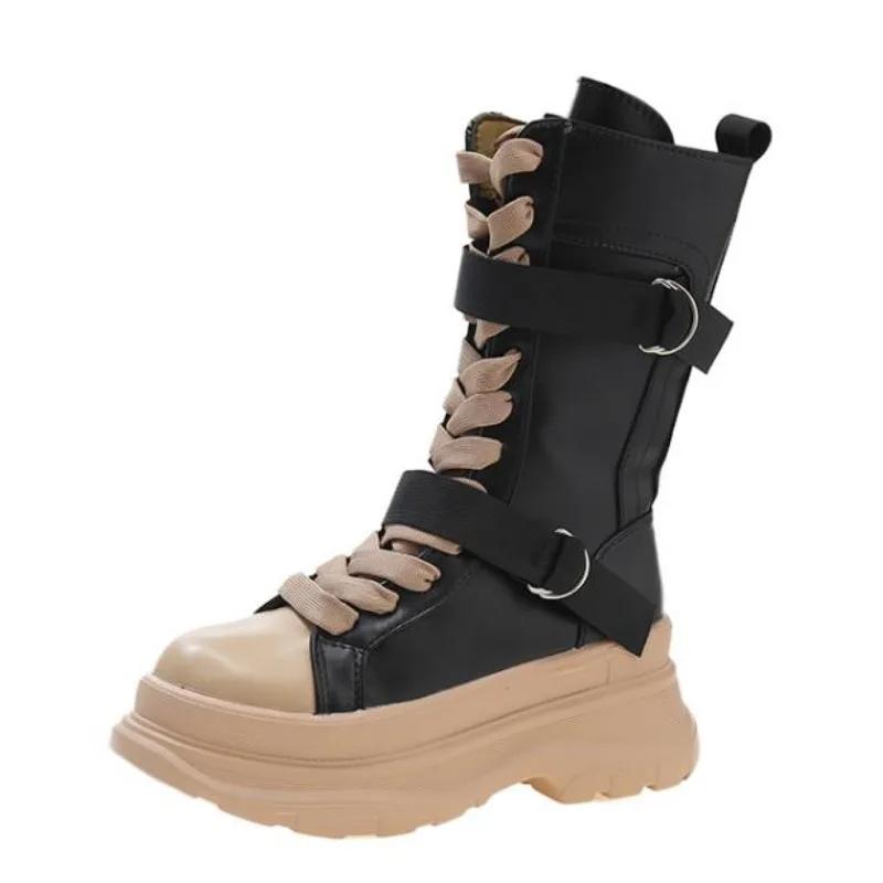 Modische Canvas Chunky Plateau Damenstiefel Herbst Winter Schnürung Reißverschluss Motorradstiefel Frau Dicke Sohle Rutschfest Stiefeletten