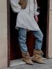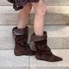 Wasteland Wind Retro Stiefel mit innenliegender Absatzhöhe, Schnürung, dünn, aber kniehoch, ideal für Herbst und Winter.
