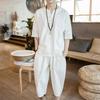 Herren Leinen T-Shirt Anzug im chinesischen Stil: Sommerkleidung aus Baumwolle im Retro-Tang-, Zen- und Hanfu-Stil