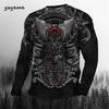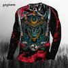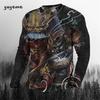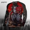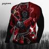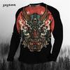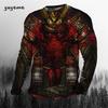 Rundhals 3D Japanischer Samurai-Druck Lässige Langarm-Herren-T-Shirts - Weicher, mittelelastischer Polyesterstoff Frühling und Herbst Relaxed Fit Kleidung