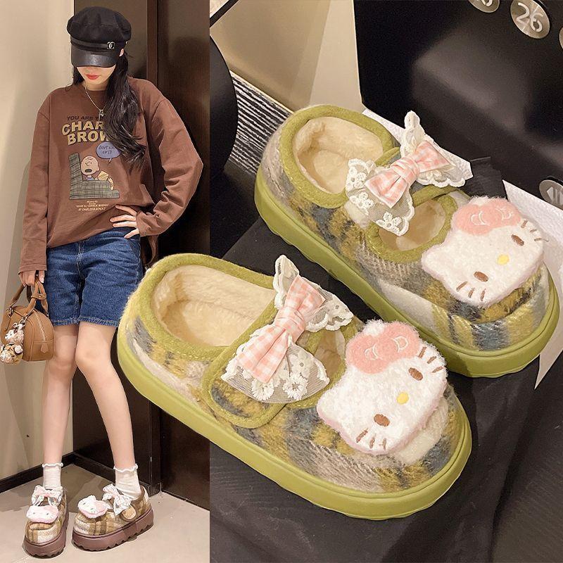 Cartoon niedliche Kätzchen Klettverschluss Baumwollschuhe Damen Herbst und Winter Mode vielseitige und bequeme Plateaus Muffin Baumwollschuhe Damen