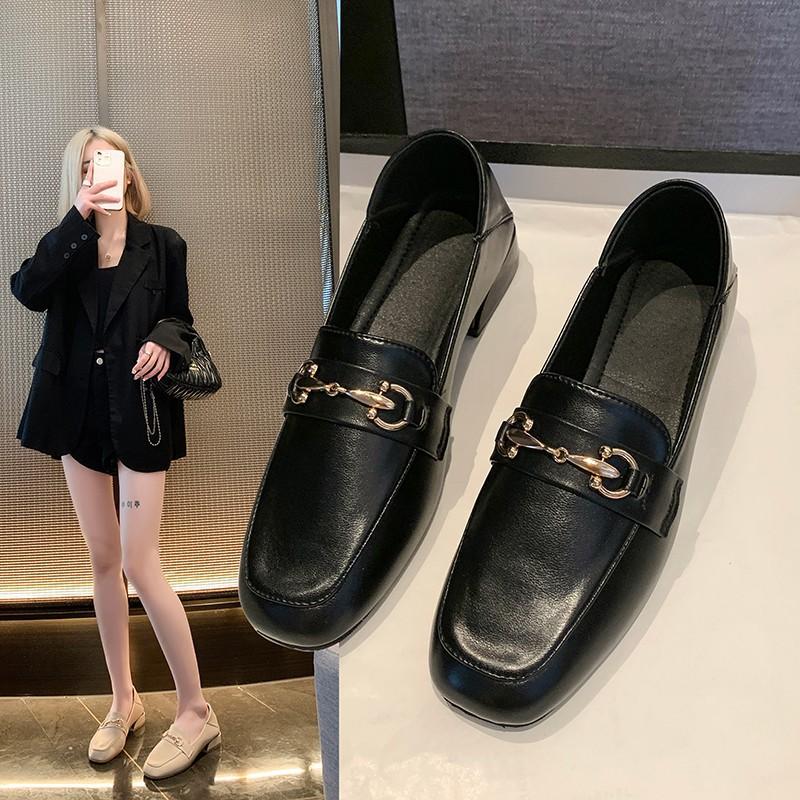 Frühling neue Damenschuhe weiches Leder dicker Absatz Einzelne Schuhe Damen mittlerer Absatz eckige Spitze Mary Jane Britischer Stil Damen kleine Lederschuhe