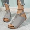 Mode Peeptoe Mittelhohe Absätze Sandalen Damen Sommer 2025 Mode Knöchelriemen Plateau Sandalen Frau Leichte Keilabsatz Strandschuhe Sandalen