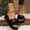 Mode Glitzernde Herzform Strass Schwarz Hausschuhe Damen Mode Elastisches Band Plateau Pantoletten Weiblich Neuer Stil Mittelhohe Absätze Hausschuhe Weiblich