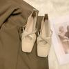 Mode Frühling Quadratische Zehenpartie Schnürung Perlenbesatz Damen Elegant PU-Leder Einzelne Schuhe Damen Party Bankett Ballerinas Mujer