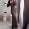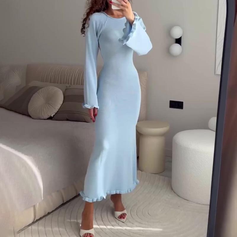 Herbst 2024 Sexy rückenfreies hochtailliertes Langarmkleid mit Rundhalsausschnitt – Damenmode