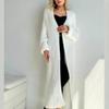 Extralanger weißer Kaschmir-Cardigan aus Nerzimitat bis über das Knie für Damen - Lockerer, dicker Herbst-/Winterpullover