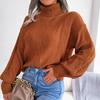 Damen Herbst/Winter Rollkragen Locker Gestrickter Pullover, Langarm Einfarbig Mode Pullover
