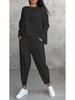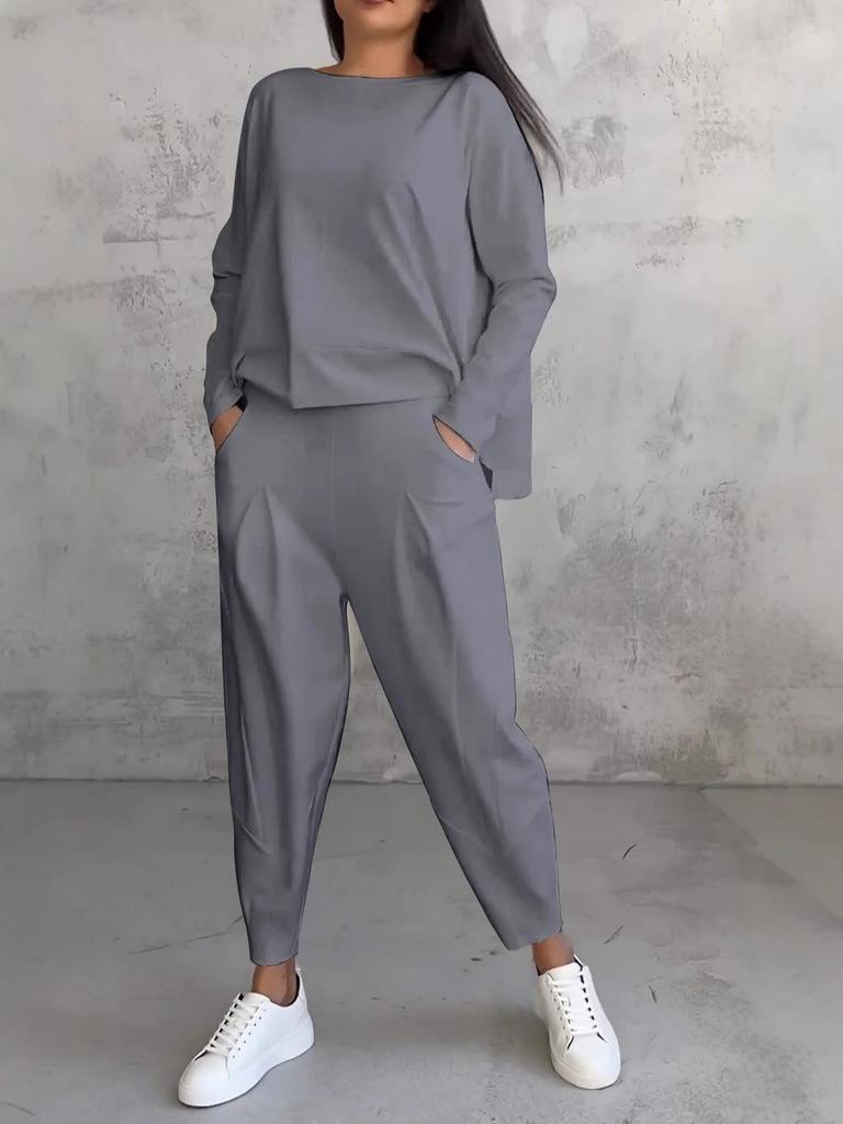 Dieses stilvolle Set zeichnet sich durch ein sportliches Design mit einem unregelmäßigen Langarm-Sweatshirt und passenden Haremshosen aus.. Dieses Outfit aus hochwertigem Polyester bietet eine bequeme und strapazierfähige Passform.. Das einfarbige Muster verleiht einen Hauch von Eleganz, während die funktionellen Taschen Praktikabilität bieten.. Perfekt für einen aktiven Lebensstil, kombiniert dieses Set nahtlos Mode und Bequemlichkeit.