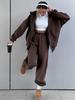 Erleben Sie Komfort und Stil mit diesem modernen zweiteiligen Kapuzenstrickjacken- und Jogginghosen-Set, das mit einer Mischung aus europäischen und amerikanischen Einflüssen entworfen wurde.. Dieses Set zeichnet sich durch ein einfarbiges Muster aus und bietet einen eleganten und vielseitigen Look, ideal für Freizeitausflüge oder zum Entspannen zu Hause.. Der lockere Schnitt sorgt für Bewegungsfreiheit, während die langen Ärmel und der Kapuzenausschnitt zusätzliche Wärme und einen trendigen Touch bieten.. Dieses Set ist aus strapazierfähigem Polyester gefertigt und garantiert sowohl Weichheit als auch Langlebigkeit.. Perfekt für Frauen, die minimalistische, schicke Kleidung ohne unnötige Verzierungen schätzen.