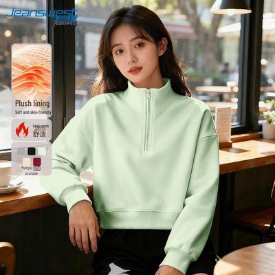 Jeanswest Damen 2024 Herbst/Winter Fleecegefüttertes Kapuzensweatshirt mit halbem Reißverschluss
